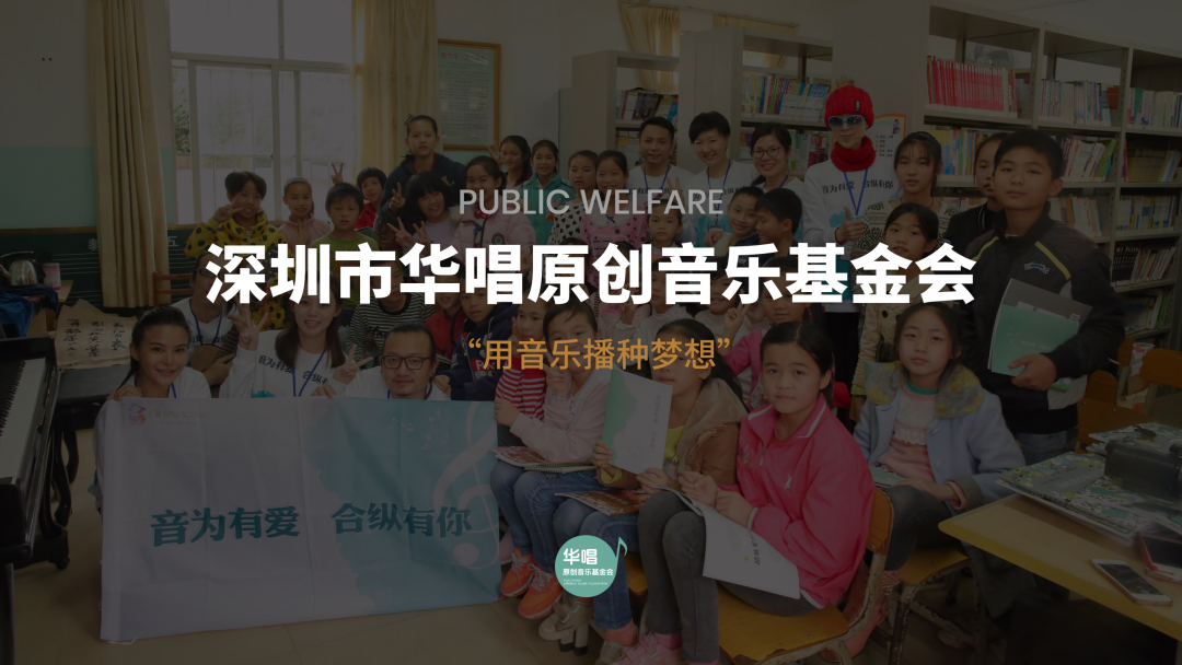 2014年,合纵文化集团董事长李华宾先生发起成立深圳市华唱原创音乐基金会(简称:华唱基金),一家非公募5A级基金,2018年,华唱基金会发起“音乐种子伴你成长”公益项目,旨在让全国的儿童都能学到优质的音乐课程。截止至今,音乐种子项目全国捐赠音乐智能机27批次,共127台,分布在13个省份、55个县区、111所学校、11个社区。扶持中国原创音乐赛事,春蜂民谣大赛、金蜗牛填词大赛、弹唱巅峰决。