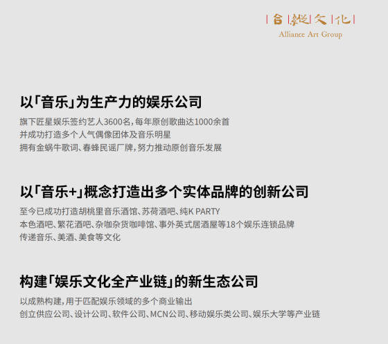 同时,与美国伯克利音乐学院达成战略合作,携手为音乐人才赋能,助推华语音乐快速发展。旗下匠星音乐学院,通过与国际顶级音乐院校,国内40+音乐艺术类高校合作,为学员提供更多优质教育资源。