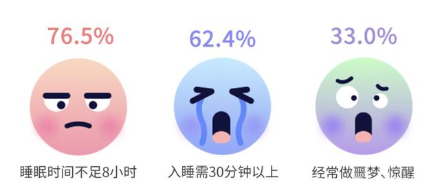 报告显示:七成现代人都有睡眠问题。睡眠时间不足、睡眠质量不高容易做噩梦或惊醒、入睡时间长等问题深深困扰着大众,对于睡眠完全健康的占比只有26.8%